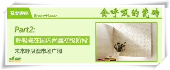 目前日本、韓國等其他國家的呼吸磚市場已經(jīng)比較成熟,相比而言,國內(nèi)呼吸瓷無論研發(fā)還是市場都尚屬于初級階段,國內(nèi)消費(fèi)者對于呼吸瓷的概念也不甚了解,一時仍難以接受,不過隨著人們對節(jié)能環(huán)保的重視,未來呼吸瓷的市場極為廣闊。